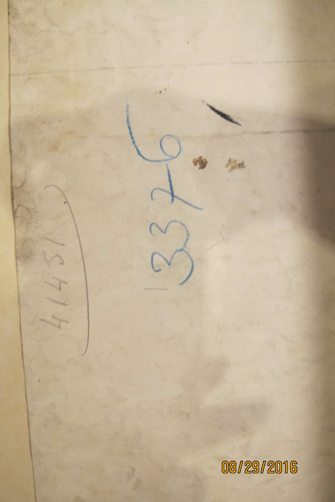Sheet Verso: red sticker: 155, blue crayon: 3376, pencil number 41451