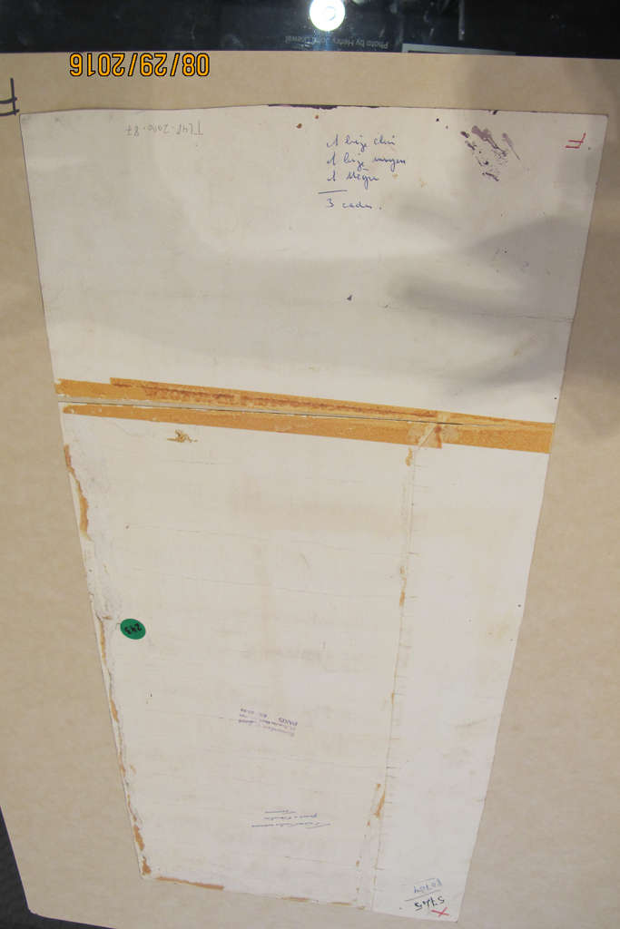 Recto: production note (see photograph); : Verso: green sticker "243", designer stamp Bonnefant et Roge, production notes, red "X", 5745