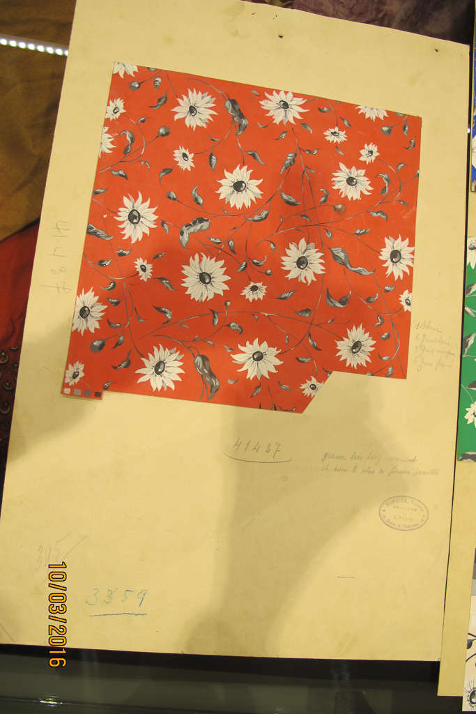 The images on this website can enable discovery and collaboration and support new scholarship, and we encourage their use. This object is in Copyright. This object is Design for a printed textile with the accession number of 2016.98.92. To request new photography, please send an email to imagerequest@risd.edu and include your name and the object's accession number.