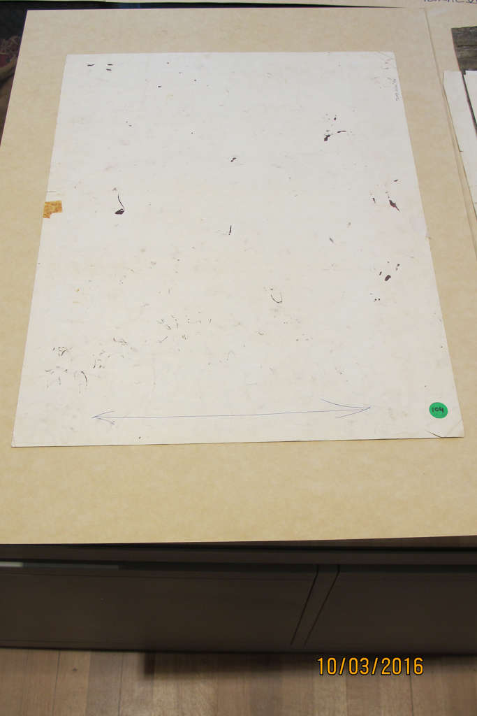 recto: Red X, 4014, artist stamp, Production notes (see Photograph) Credit / Object Number