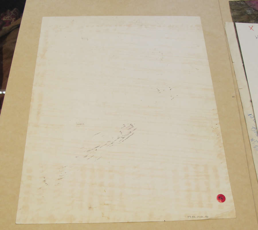 recto: Red X, 4017, artist stamp, Production notes (see Photograph) Credit / Object Number