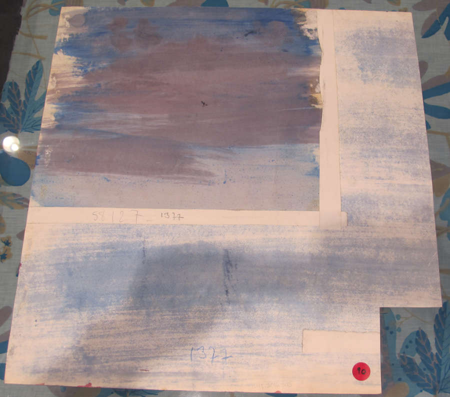 Verso: red sticker: 90, blue number: 1377, pencil number: 58127,
