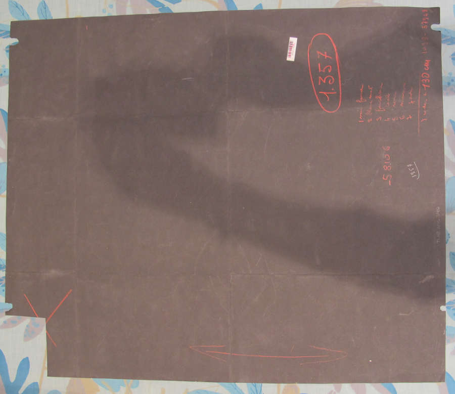 Verso: red pencil: production notes, 58106; pencil number: 1357, barcode