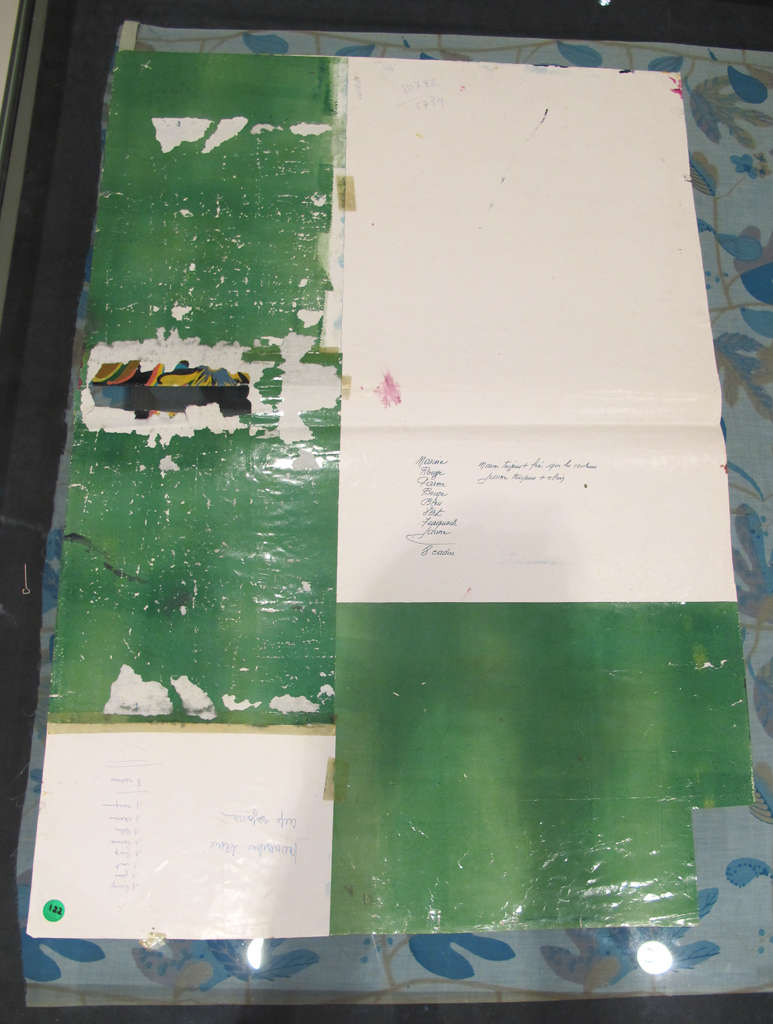 Verso:black numbers: 5739, 80732, green sticker: 122, production notes