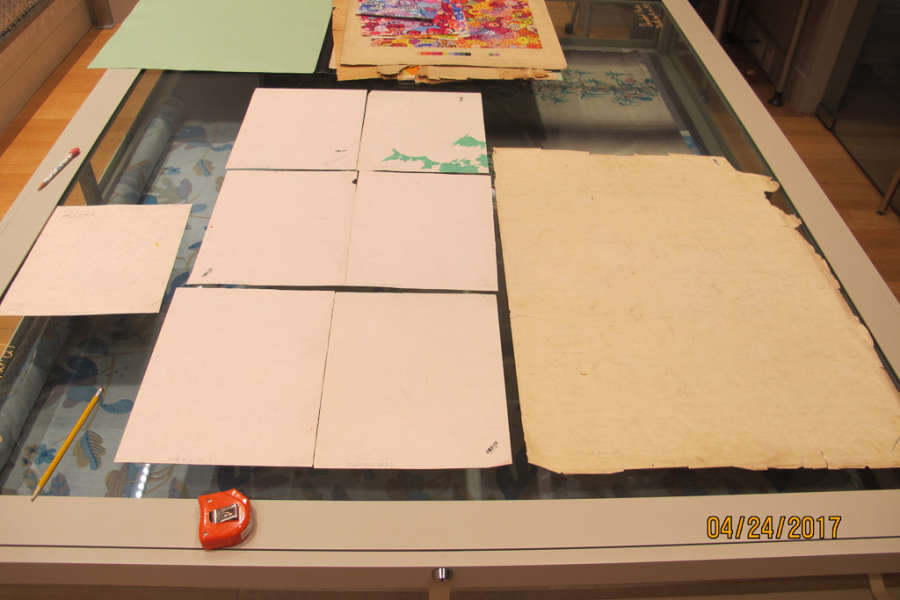 Verso: barcode (including 4 of the 7 colroways) Credit / Object Number