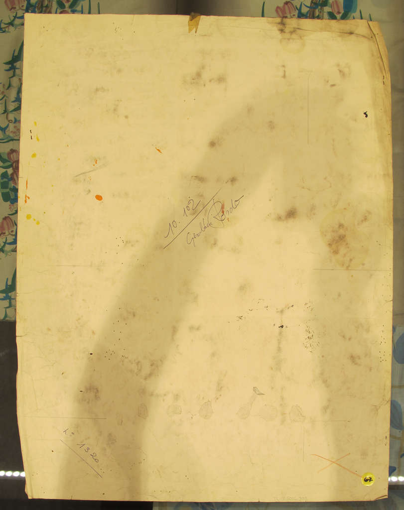 Verso: yellow sticker: 67, production notes