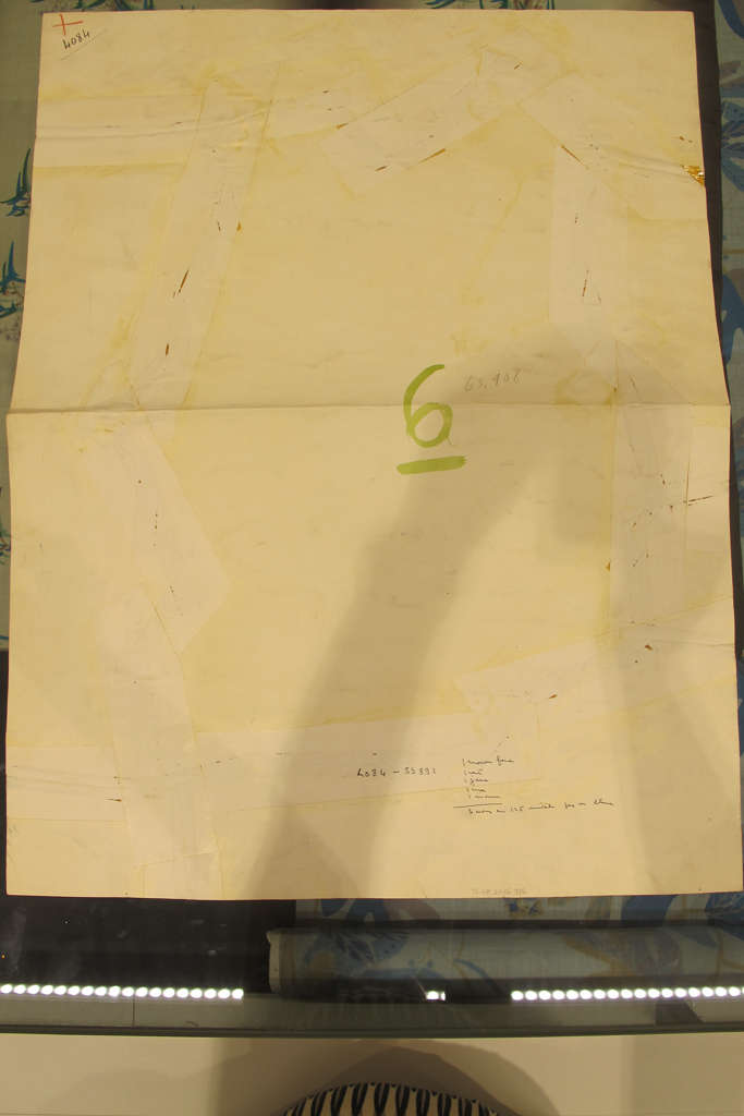 Verso: Ink number: 4084, 59892, production notes, Large painted green 6