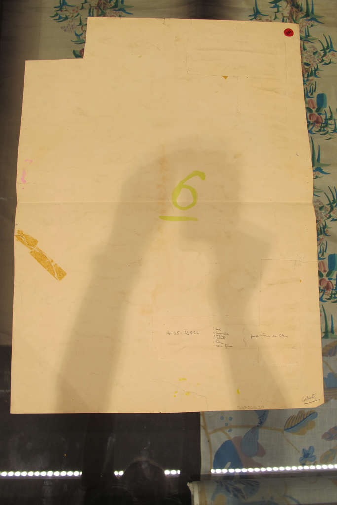 Verso: Red sticker: 101, Ink number: 4035, 59824, production notes, Large painted green 6