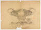 In orange crayon to lower right of drawing, "950/1000". In ink below drawing "EWA" with "Punch Bowl / EWK Plateau" in pencil. Various scribbled manufacturing specifications on drawing in pencil.