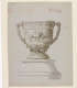 "WESTMINSTER / MASTIFF CLUB" on face of trophy, pencil and watercolor. "738" in ink boxed by a rectangle in upper left corner, "738" in red crayon boxed by a rectangle to left of top center. A circular ink stamp in upper left corner reads "GORHAM MANUFACTURING CO. / PROV. R.I. / JAN / 11 / 1889". Red ink stamp in upper right corner and at bottom center reads "SPECIAL FILES / RETURN TO DEPT. G2 ". "Casting #9210" in ink script to right of handle. "29" in pencil in lower left corner.