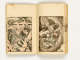 Octagonal label adhered to inside of front cover, top right with inscription in ink: 31.398.4/Hokusai