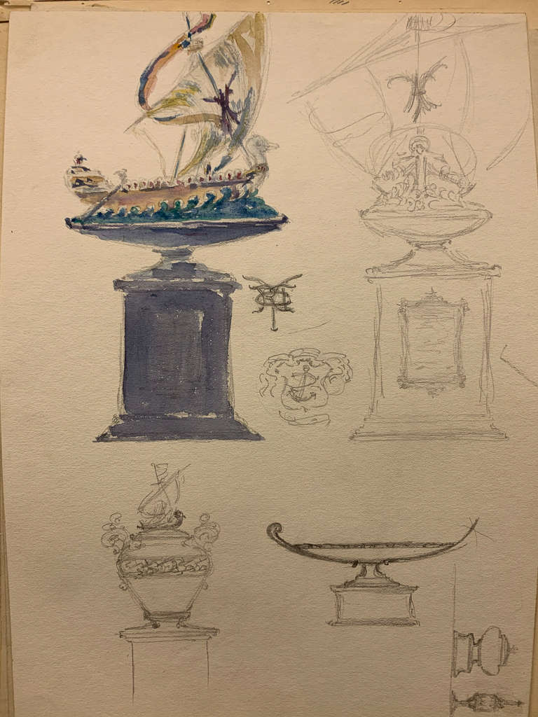 Designs for ornaments:ship, ship jar and bowl