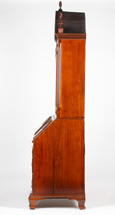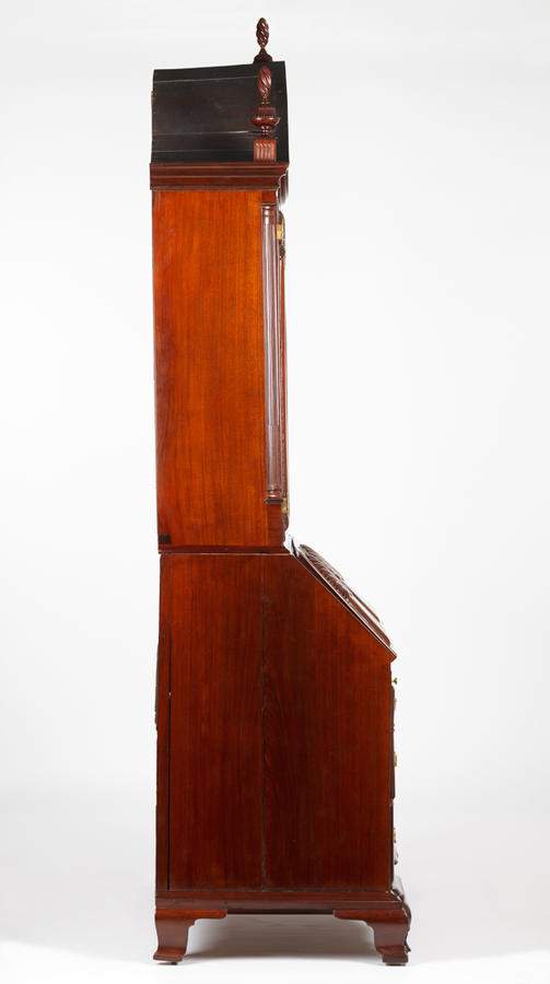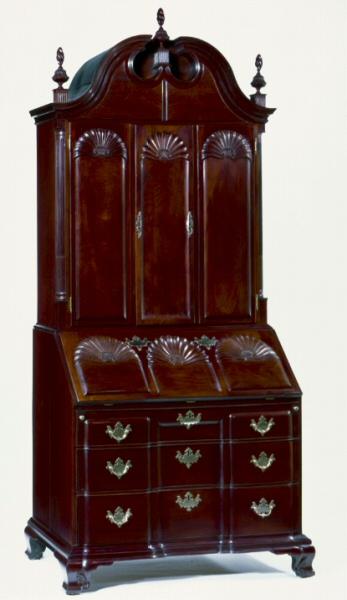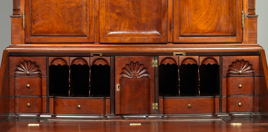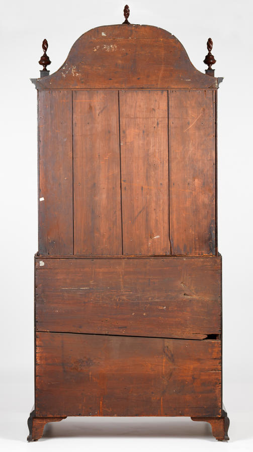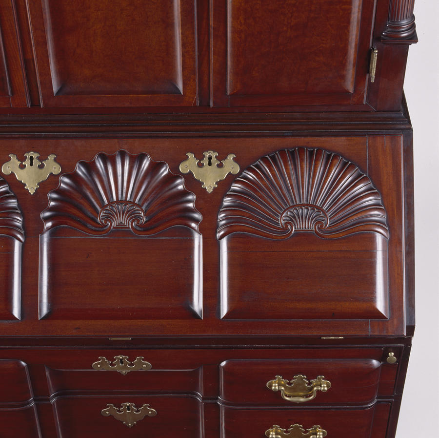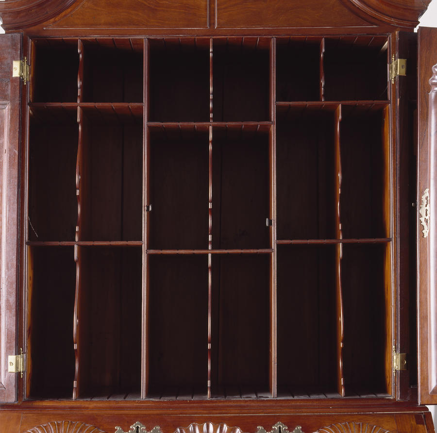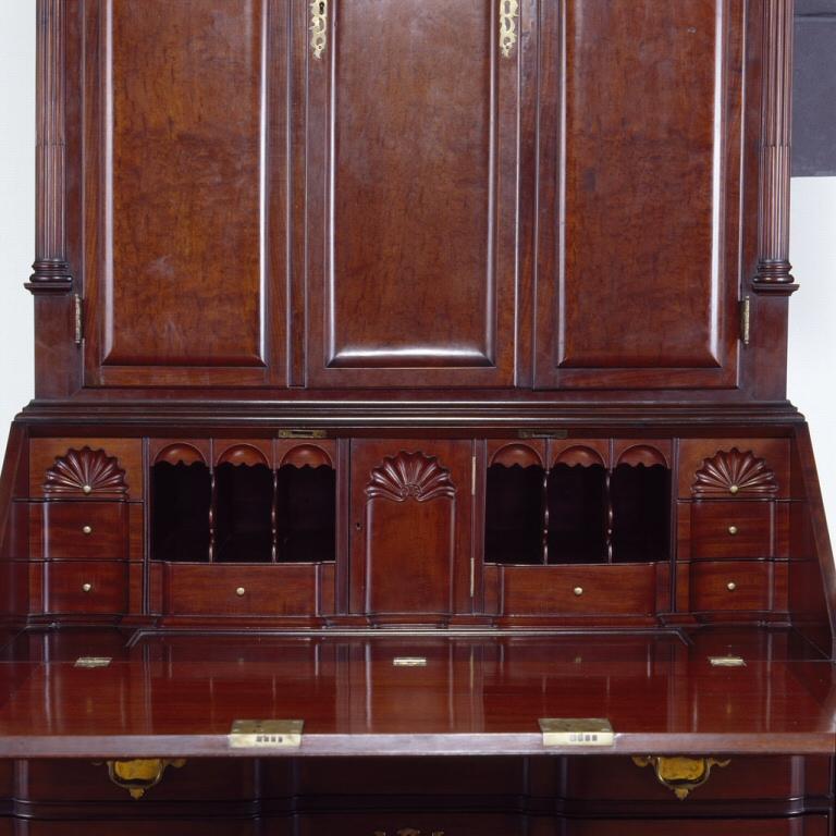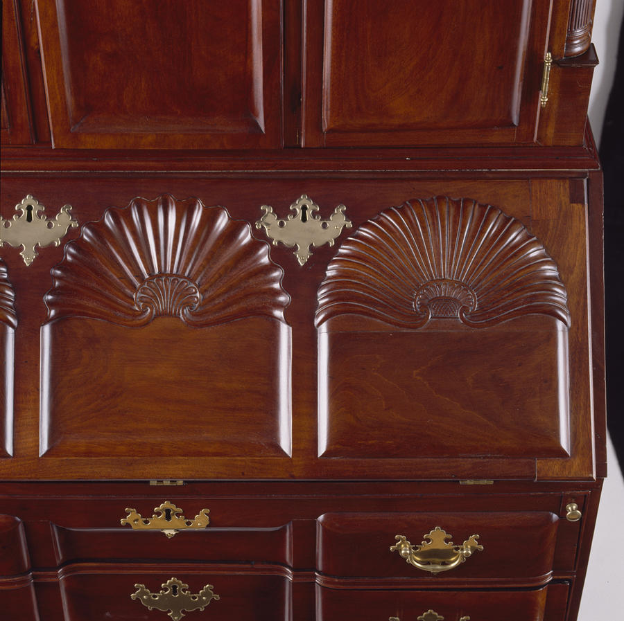 Inscription on on exterior back of top prospect drawer: Made by John Goddard / 1761 and repaired by / Thomas Goddard [hu?] 1813. / Repaired by R. Minkler 1879 / Polished } Cleveland Bros.