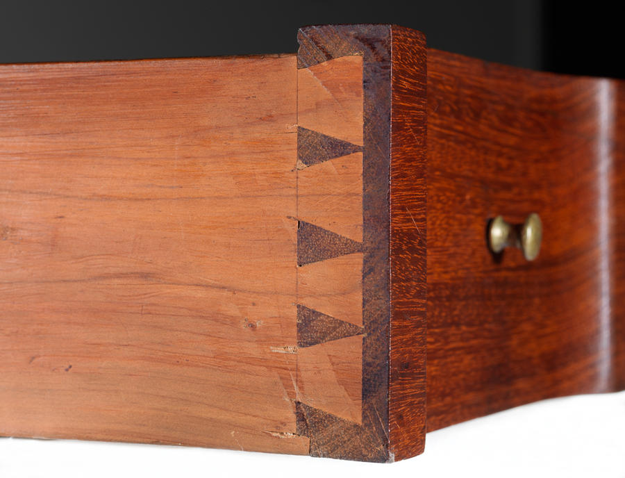 Inscription on on exterior back of middle prospect drawer: Made by John Goddard / 1761 & Repaired By / Thomas Goddard 1813 / Repaired by Langley Bennett / 1863 / Repaired scraped and varnished / By Cleveland Bros. / 1879