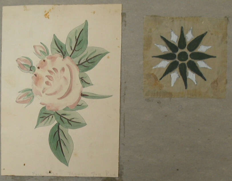 On the cardboard recto in pencil: "A / B".On the cardstock recto in pencil: "FULL SIZE FLOWER FOR RUG".