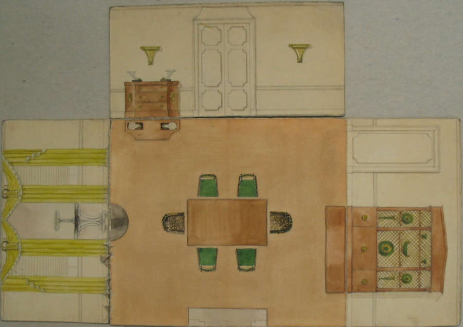 On verso of central panel in pencil: "DINING ROOM / M(?)M. L. STRAUS / 1/20/(55?) / 8"=1' "