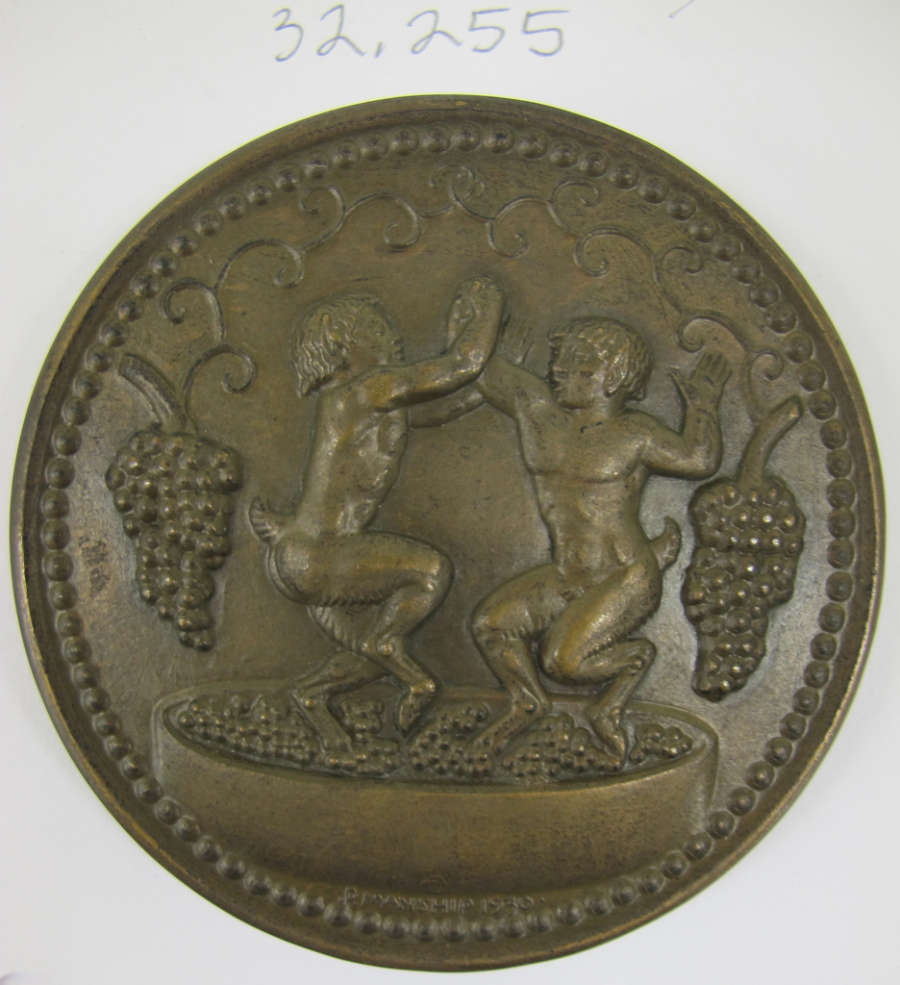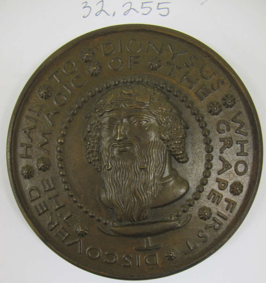 Obv: HAIL.TO.DIONYSUS.WHO.FIRST.DISCOVERED.THE.MAGIC.OF.THE.GRAPE.
