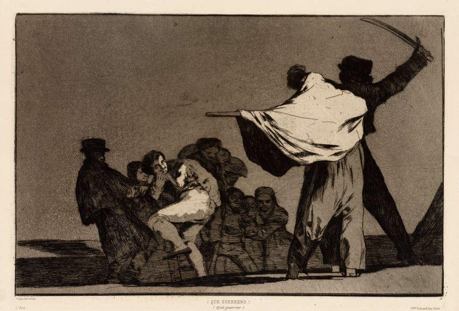 Lettered LL: "Goya inv. et sc. / L'Art"; LC: "Que guerrero! (Quel guerrier)"; and LR: "F.cois Liénard Imp. Paris."