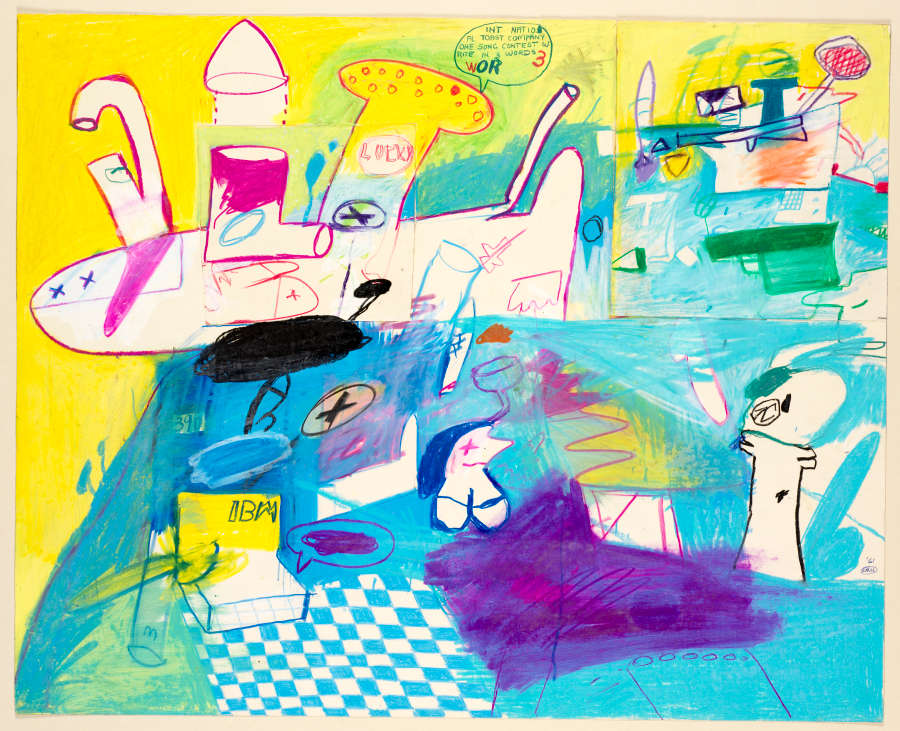 Signed Saul within an oval and dated '61 in blue ink at recto lower right. Inscribed in blue ink, verso center: Dogpatch Saul '61