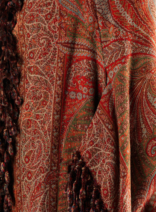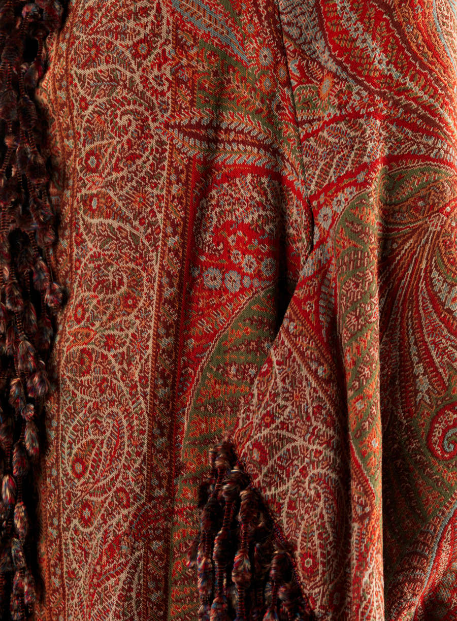 Wool jacquard weave with silk chenille fringe