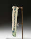Glass, free-blown, applied deep aqua glass