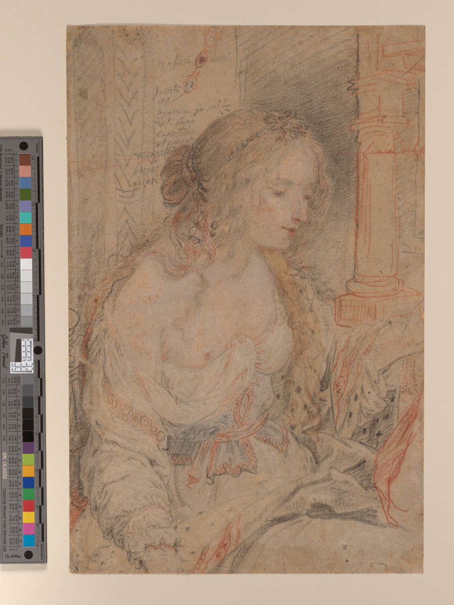 Double-sided sheet: Recto: Half-length study of Young Woman; Verso: Study of a Kneeling Man