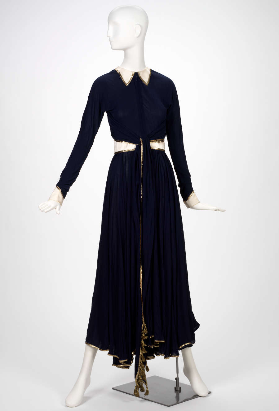 Rayon, silk, Lurex; jersey knit, satin weave, plain weave, tassels
