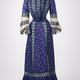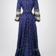 Printed silk, lace trim, silk taffeta embellished with French-knot embroidery