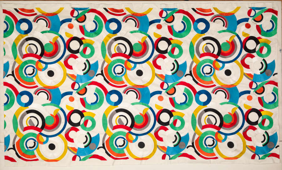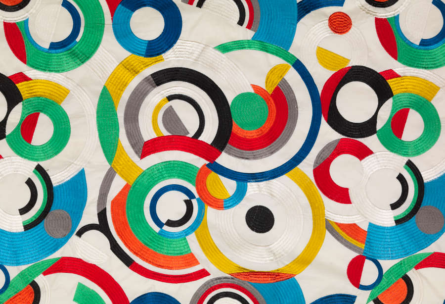 Cotton and polyester plain weave digitally embroidered with rayon thread