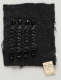 Knotted black soutache, surrounded by cord and accented by glass beads on heavy felted wool twill.
