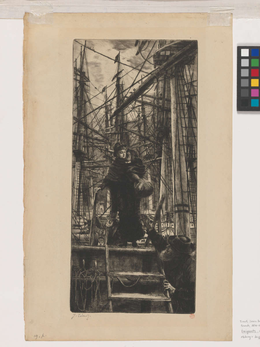 Original--Recto:in pencil signed, LL:J. Tissot - ; in LL corner:19.p.In Plate--Signed on rail, LL:JJ Tissot (1st s is reversed)