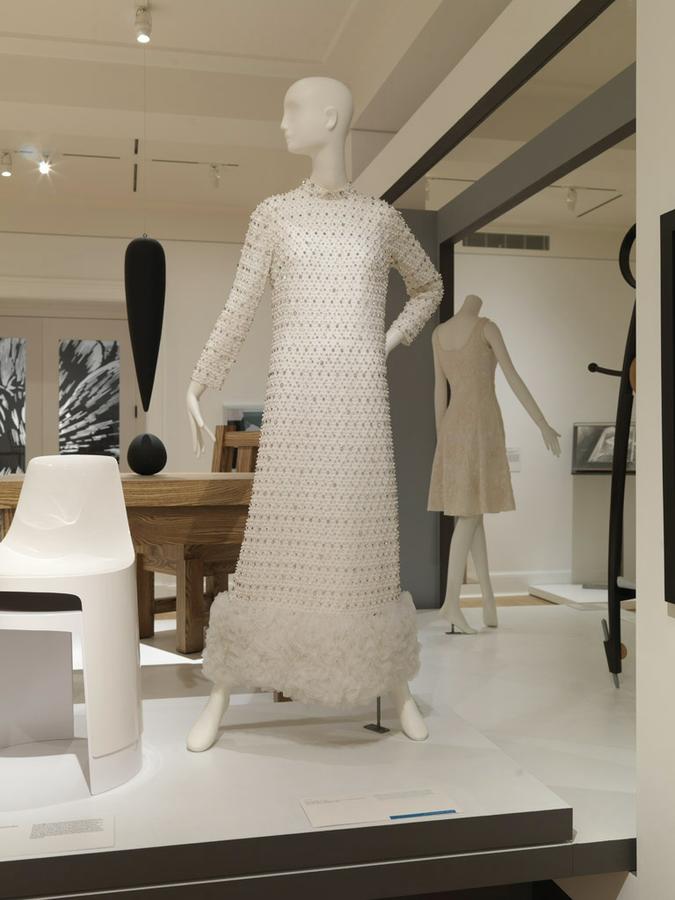 Nylon, faux pearls, rhinestones; machine lace, plain weave, appliqué