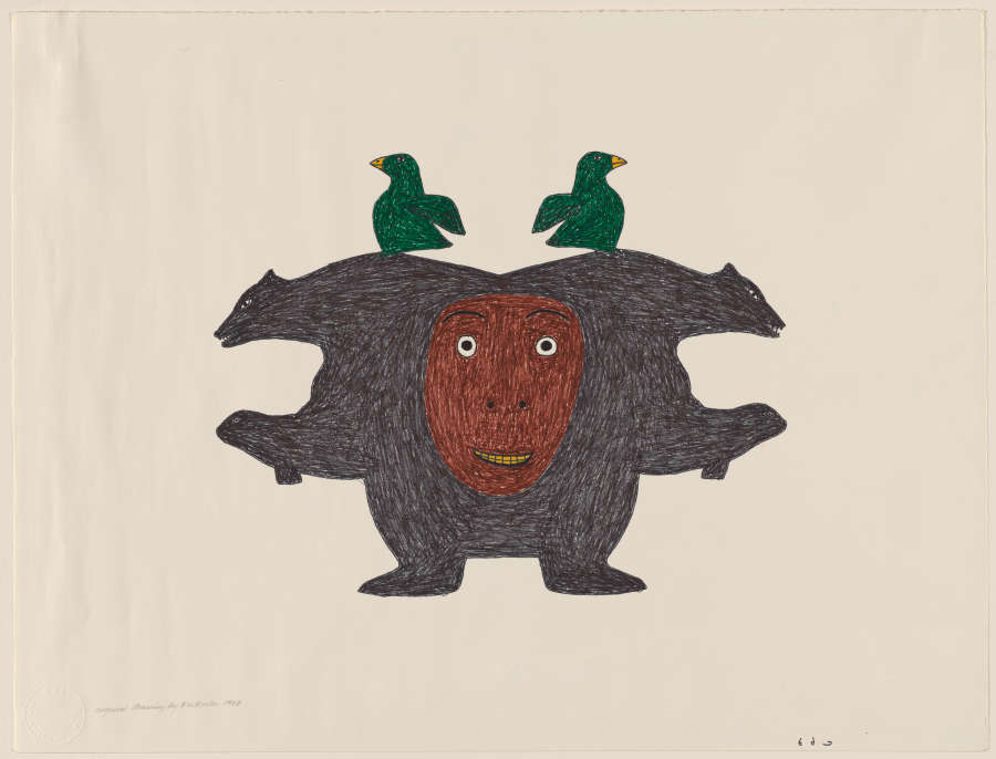 Inscribed in pencil in LL:original drawing by Kukulu 1968;in felt pen in LR:6d (reverse c). Cape Dorset blind stamp at LL