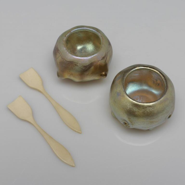 Favirile Salt Dish with Spoon, ca. 1900-20