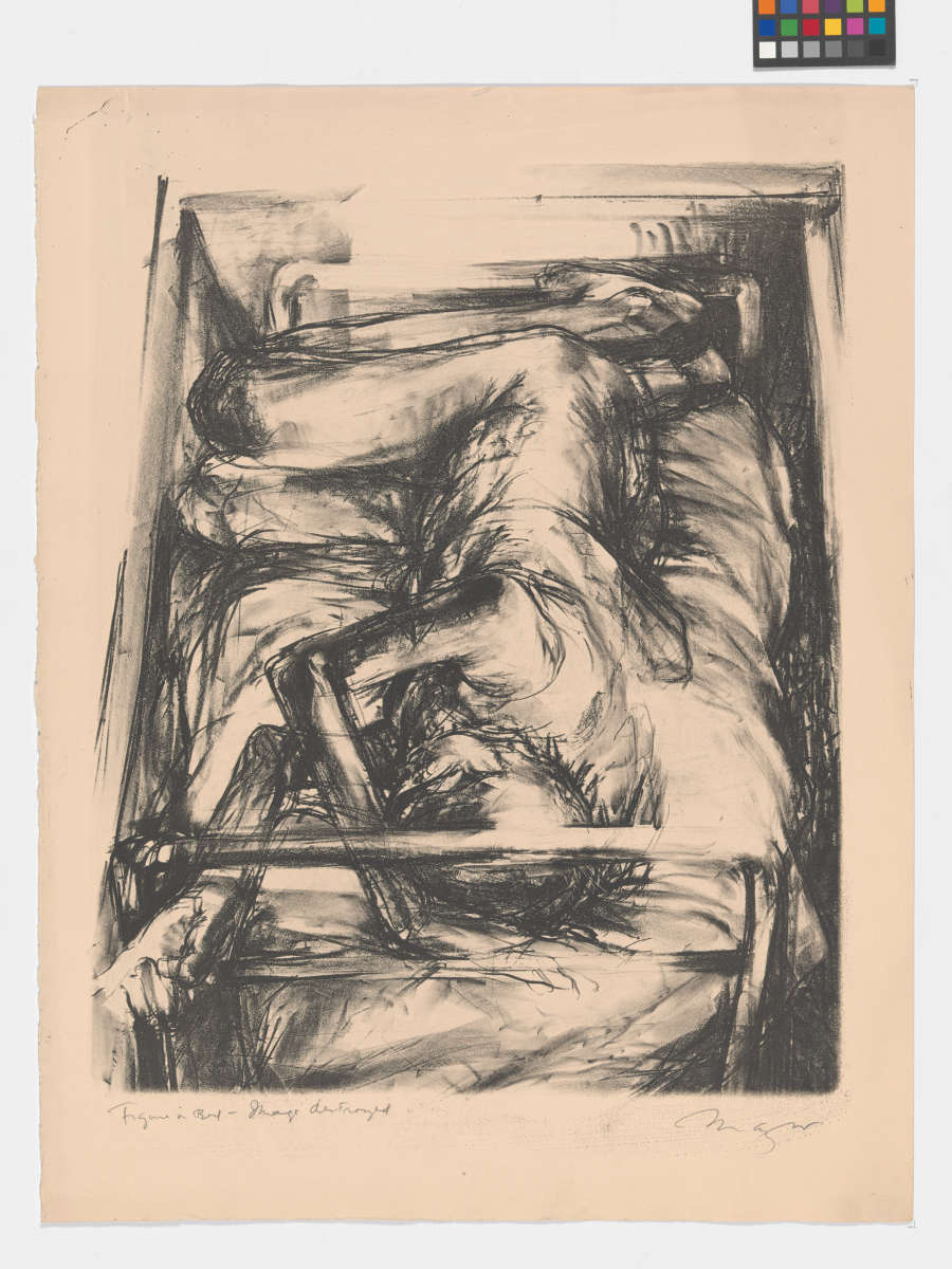 Inscribed in graphite, LL: "Figure in Bed - image destroyed" LR: "Mazur"
