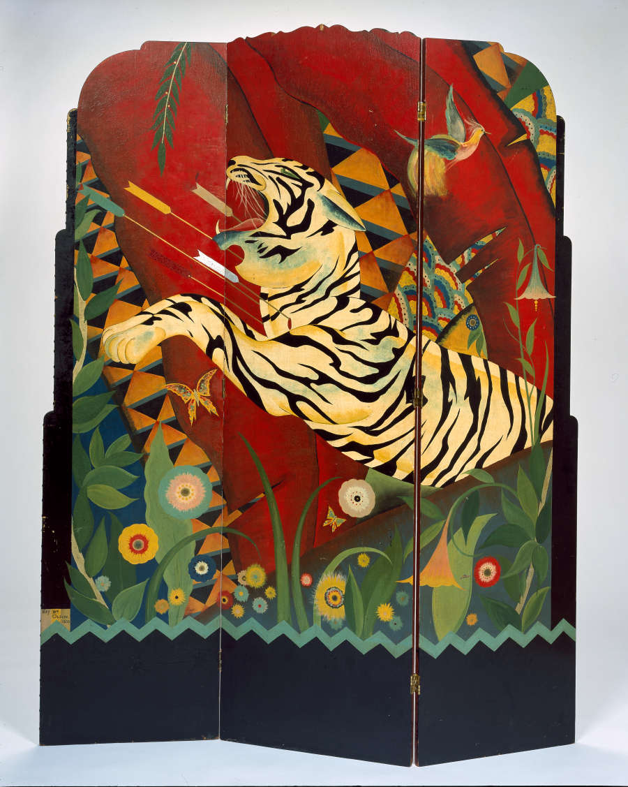 Signed on reverse of center panel and in lower left corner of left panel:Ray Wm. Olson 1933