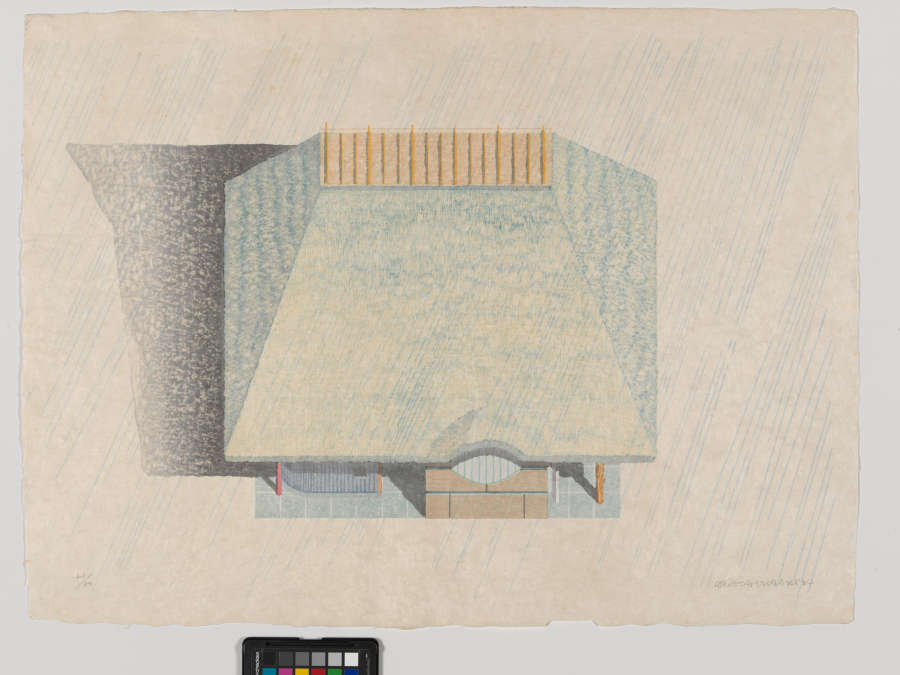 Inscribed in graphite, recto, lower left: 23/50; on recto lower right: ARATA ISOZAKI '84; Embossed on recto, lower left: [three Japanese characters]