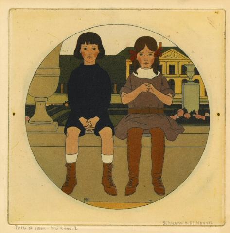 Original--Recto:in pencil, LL:Frère et Soeur - tiré à 200-2 ; signed, LR:BERNARD B. DE MONVELVerso:in pencil, LL:33 x 33In Plate--Artist's monogram, LL:BMB ; dated, LR (in reverse):1911