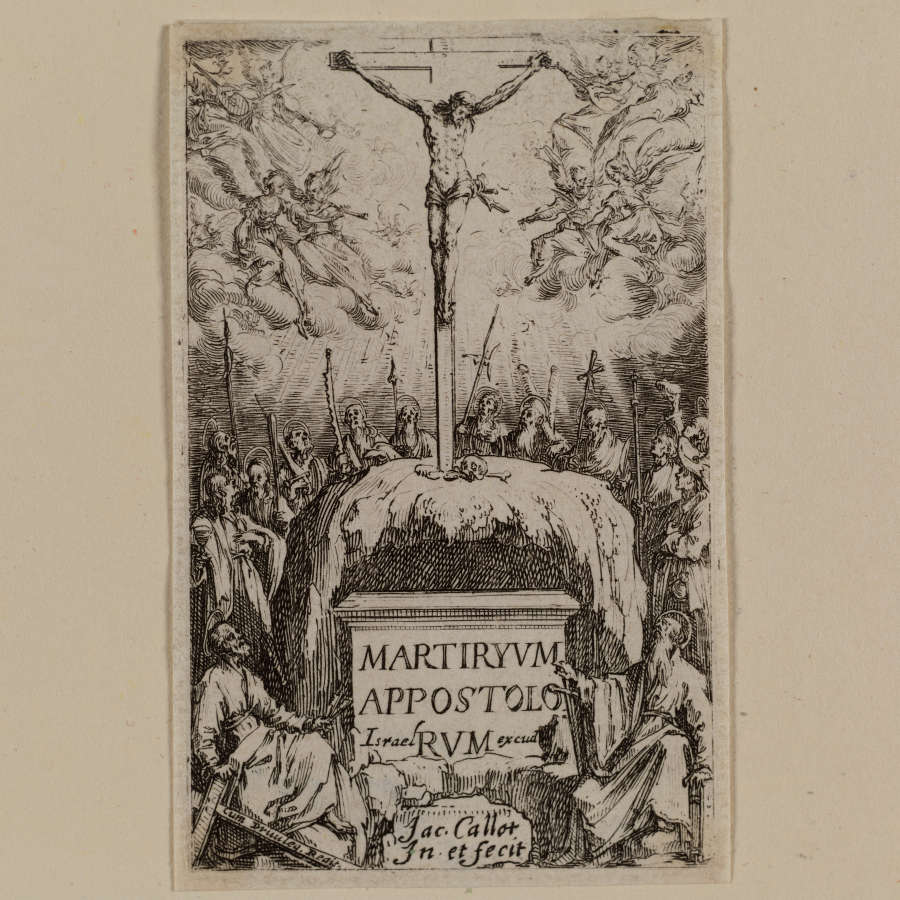 Original--Verso:in pencil, LR:15 sur In Plate--Titled, LC:MARTIRYVM/APPOSTOLO/RVM; in LL:Israel; in LR:excud.; in LC on bottom:Jac. Callot/In. et fecit; on cross, LL corner:cum priuileg.