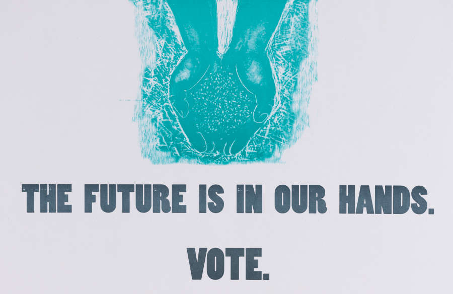 On verso, "The Future Is In Our Hands" inscribed in graphite BC, signed and dated "RD 2020" in graphite LR.