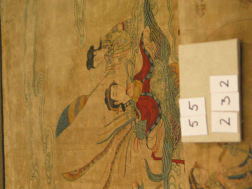 Silk, metallic-wrapped yarn; tapestry weave, hand painted