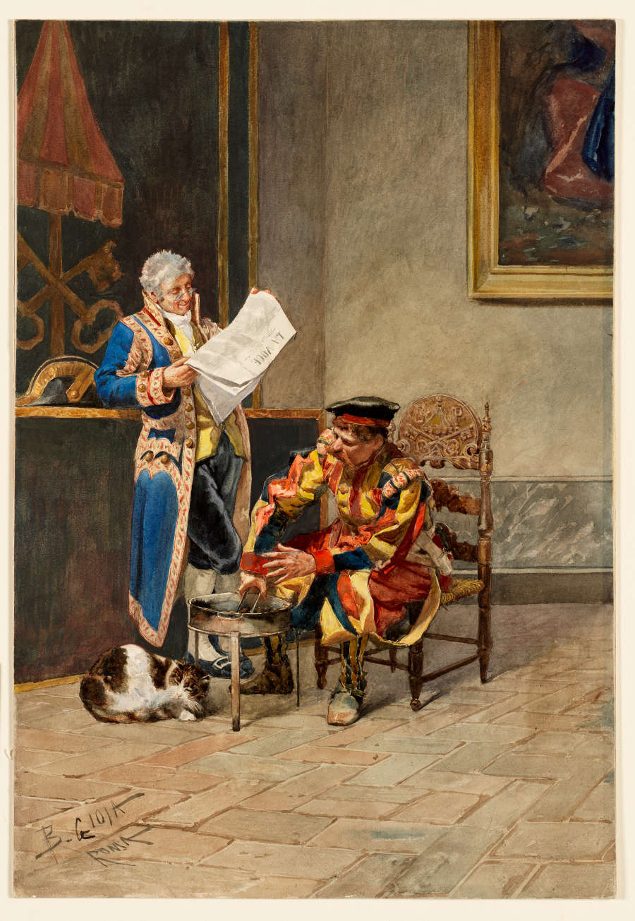 A Gentleman Reading the Newspaper and His Servant, early 1800s-early 1900s