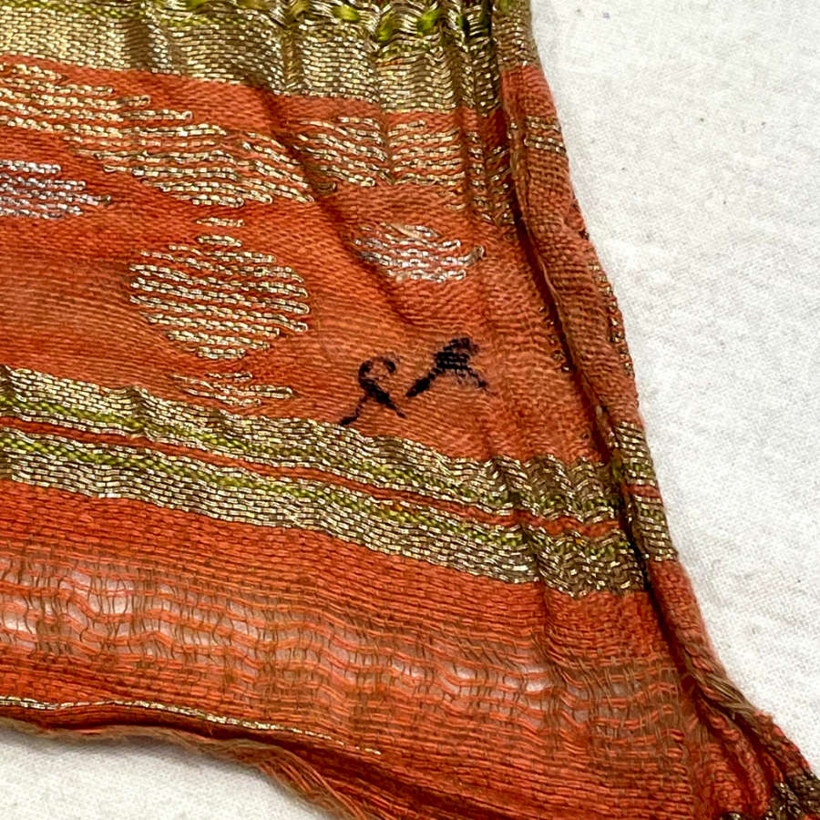 Cotton, metallic-wrapped thread; plain weave, tie-dyed (bandhani)