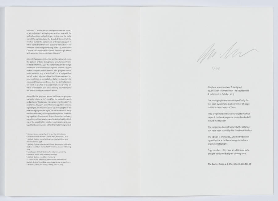 last page of book, on recto, in graphite: “[artist’s signature] / 1/45”