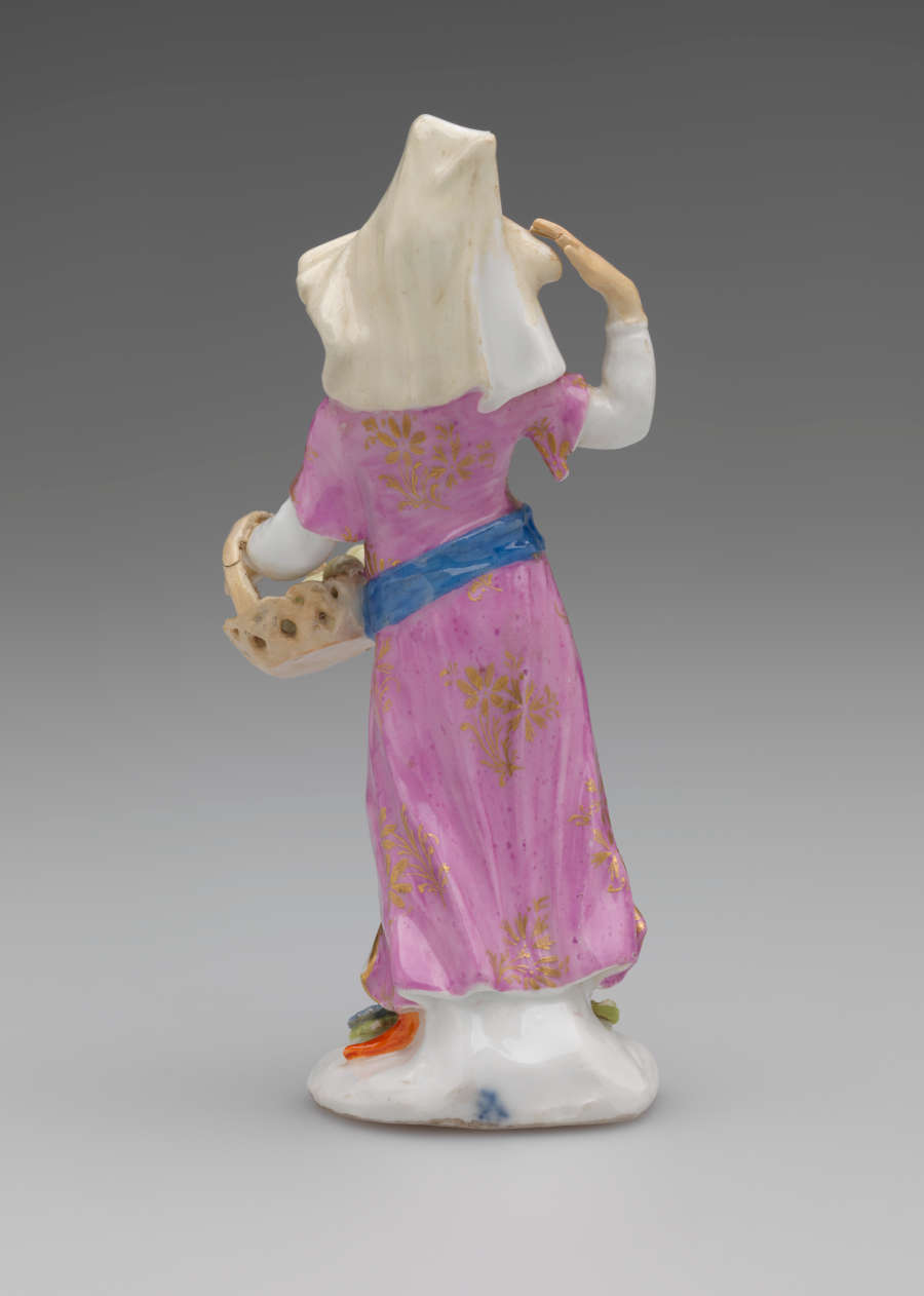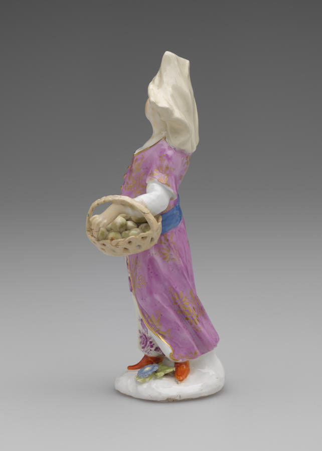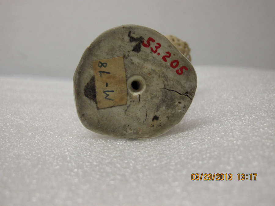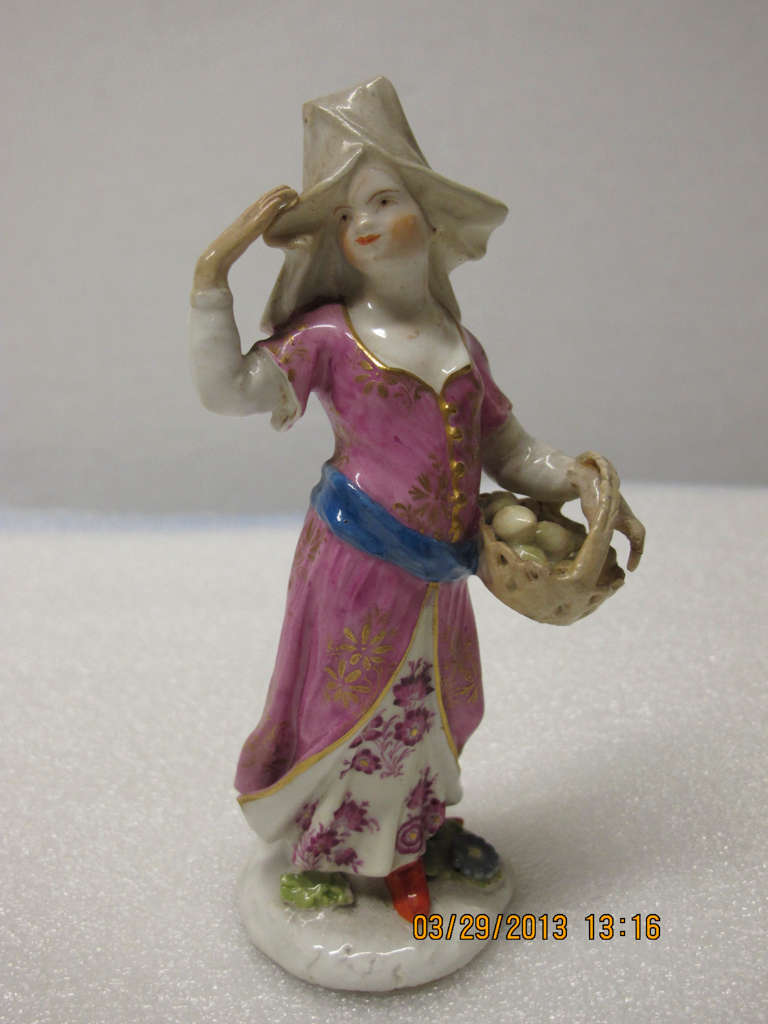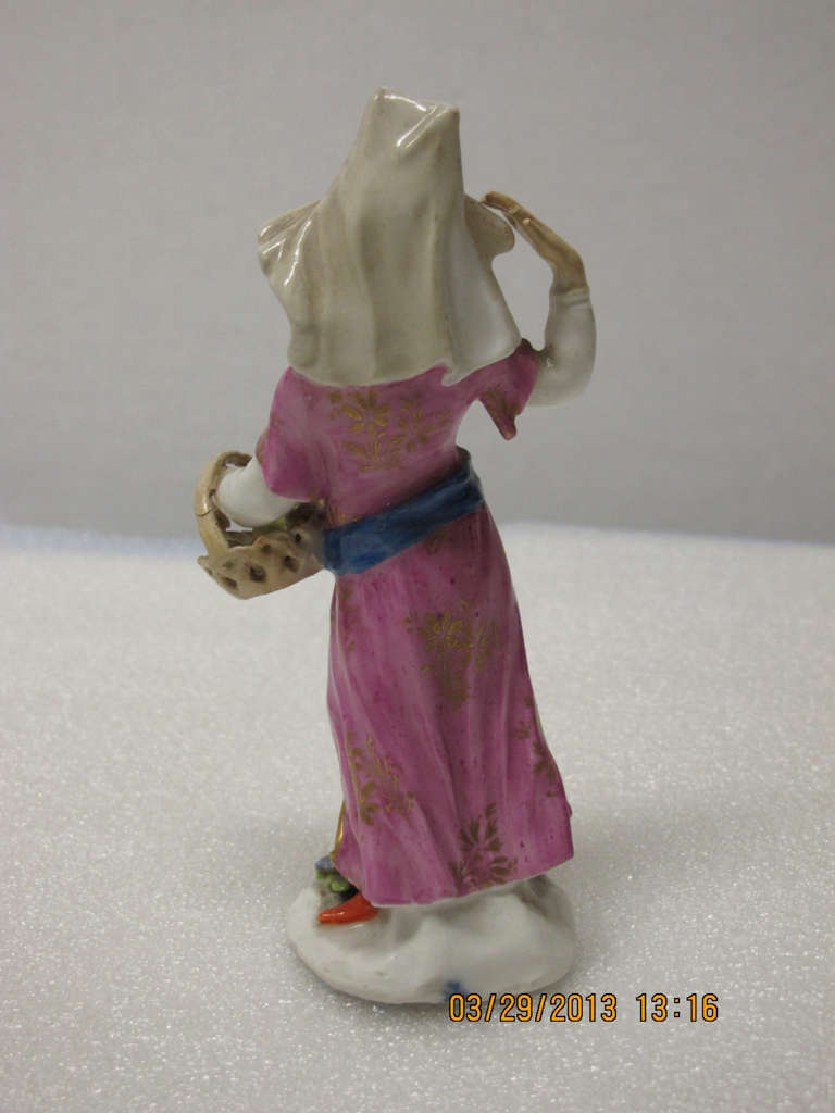 Marks: Back of base marked with crossed swords in underglaze blue.Unglazed bottom of base contains one hole and two fire cracks. Paper label M-78.