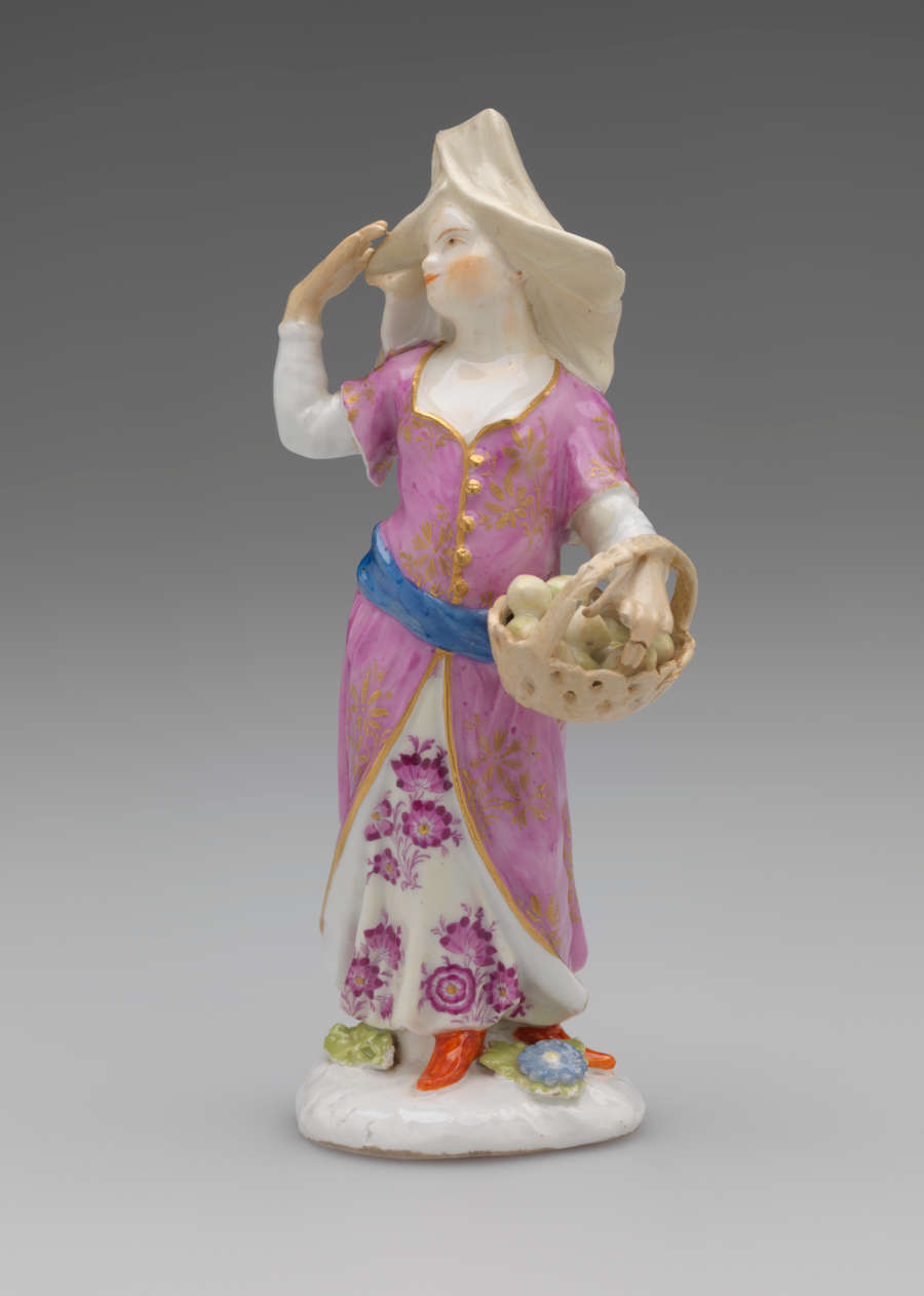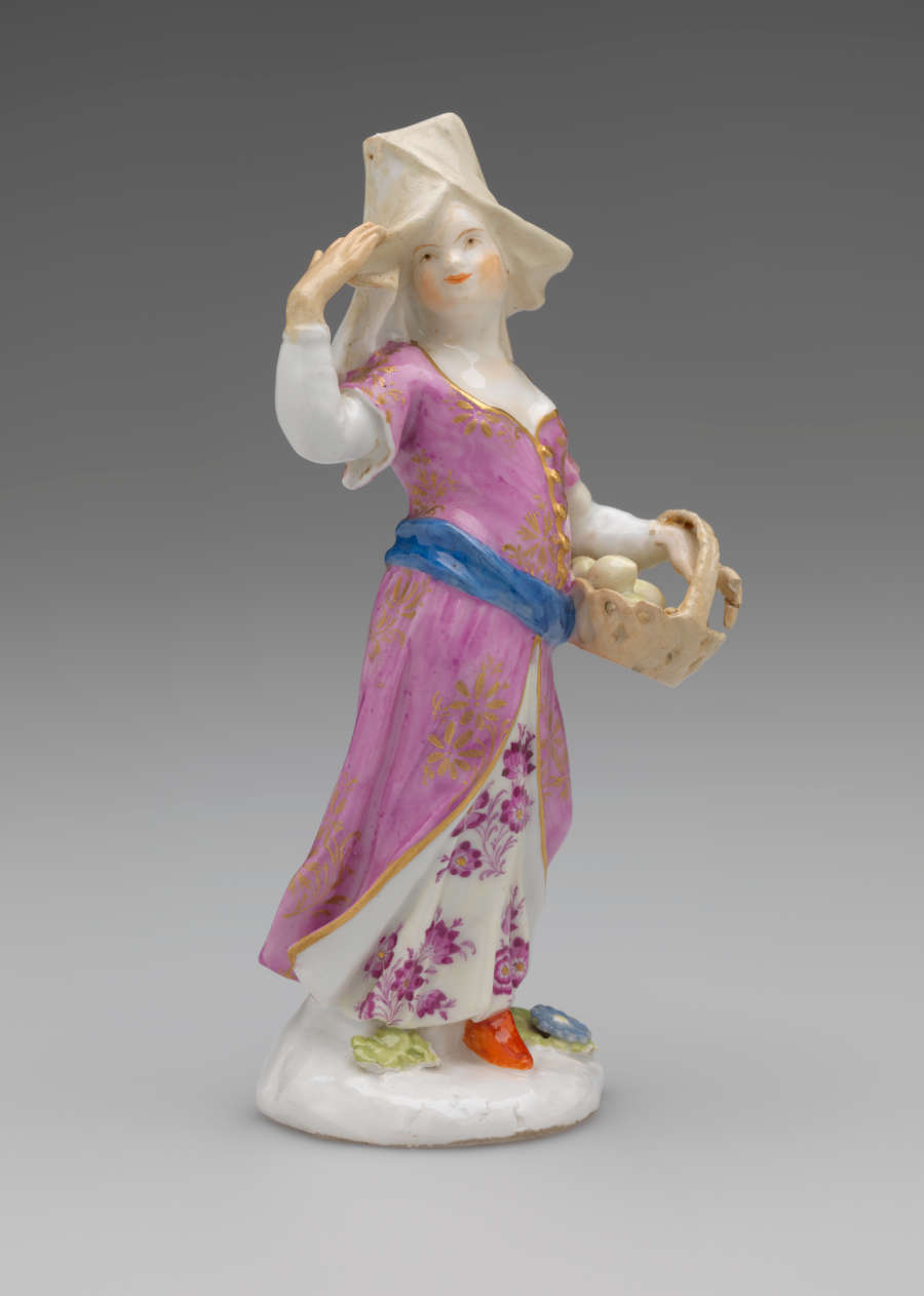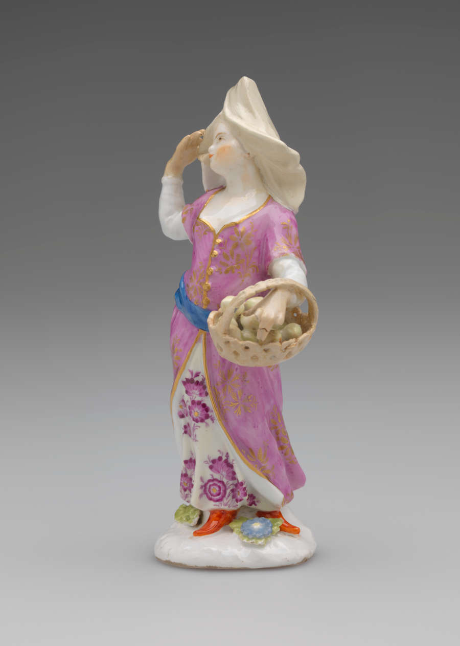 Marks: Back of base marked with crossed swords in underglaze blue.Unglazed bottom of base contains one hole and two fire cracks. Paper label M-78.