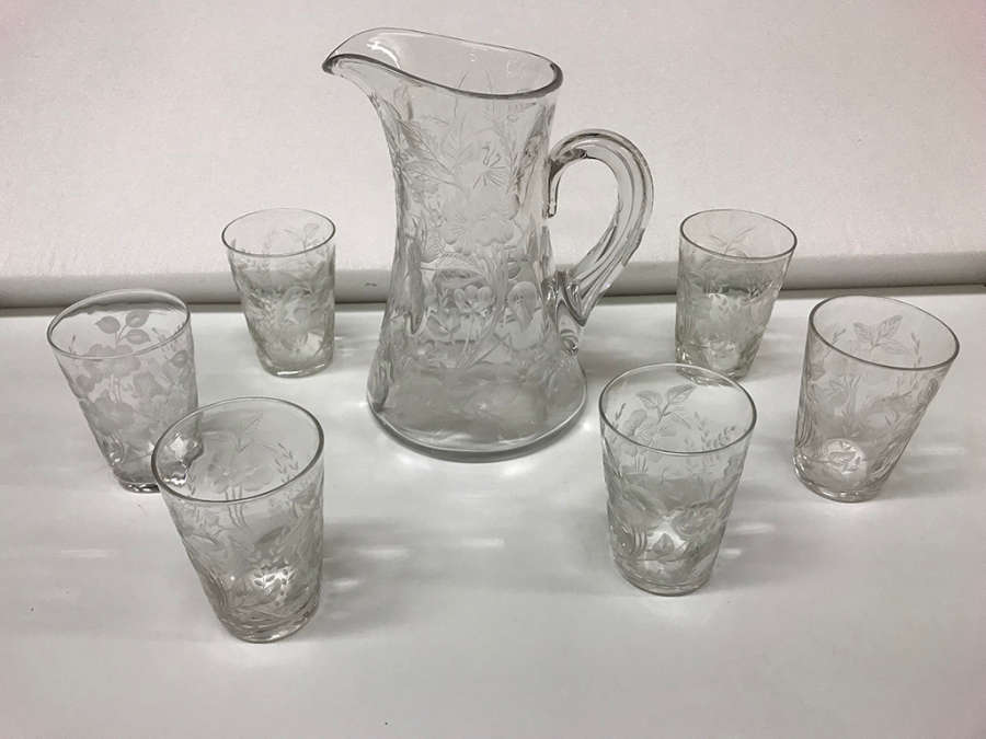 Glass pitcher with six tumblers