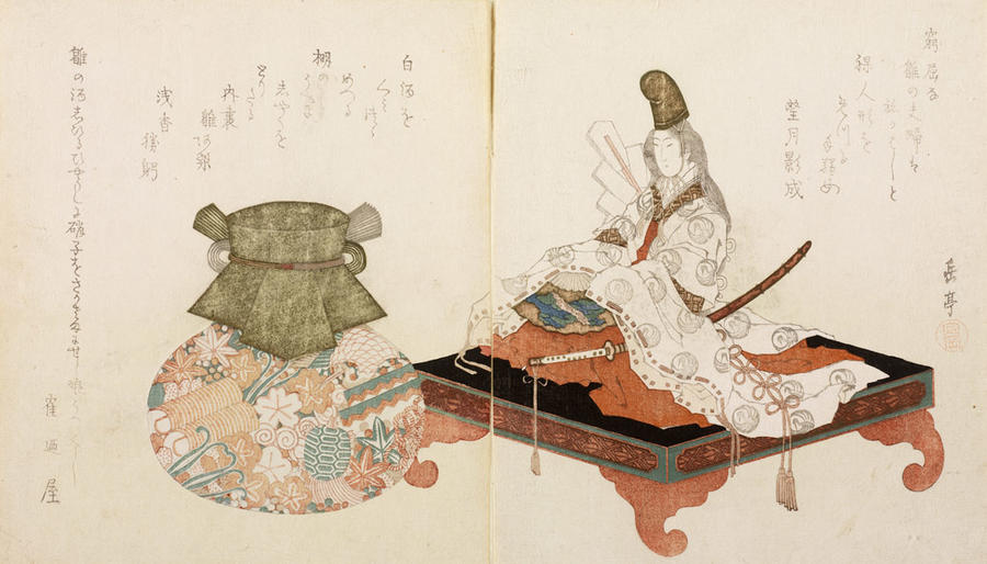polychrome woodblock print with embossing and metallic embellishment (surimono)