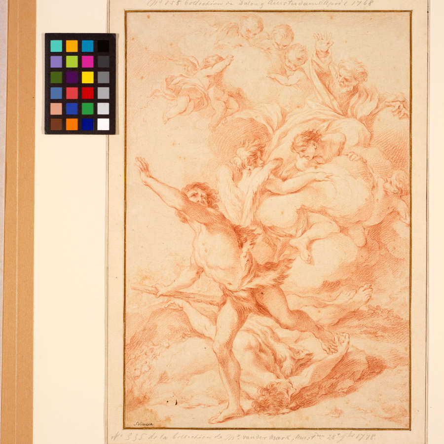 Inscribed in pen and ink an 18th-century hand, LL:"Solimene"; inscribed in graphite on old mount:"No. 155 Collection de Dulong, Amsterdam, 15 April 1768" and "No. 335 de la Collection de Mr. van der Mark, Amsterdam 28th---1778."