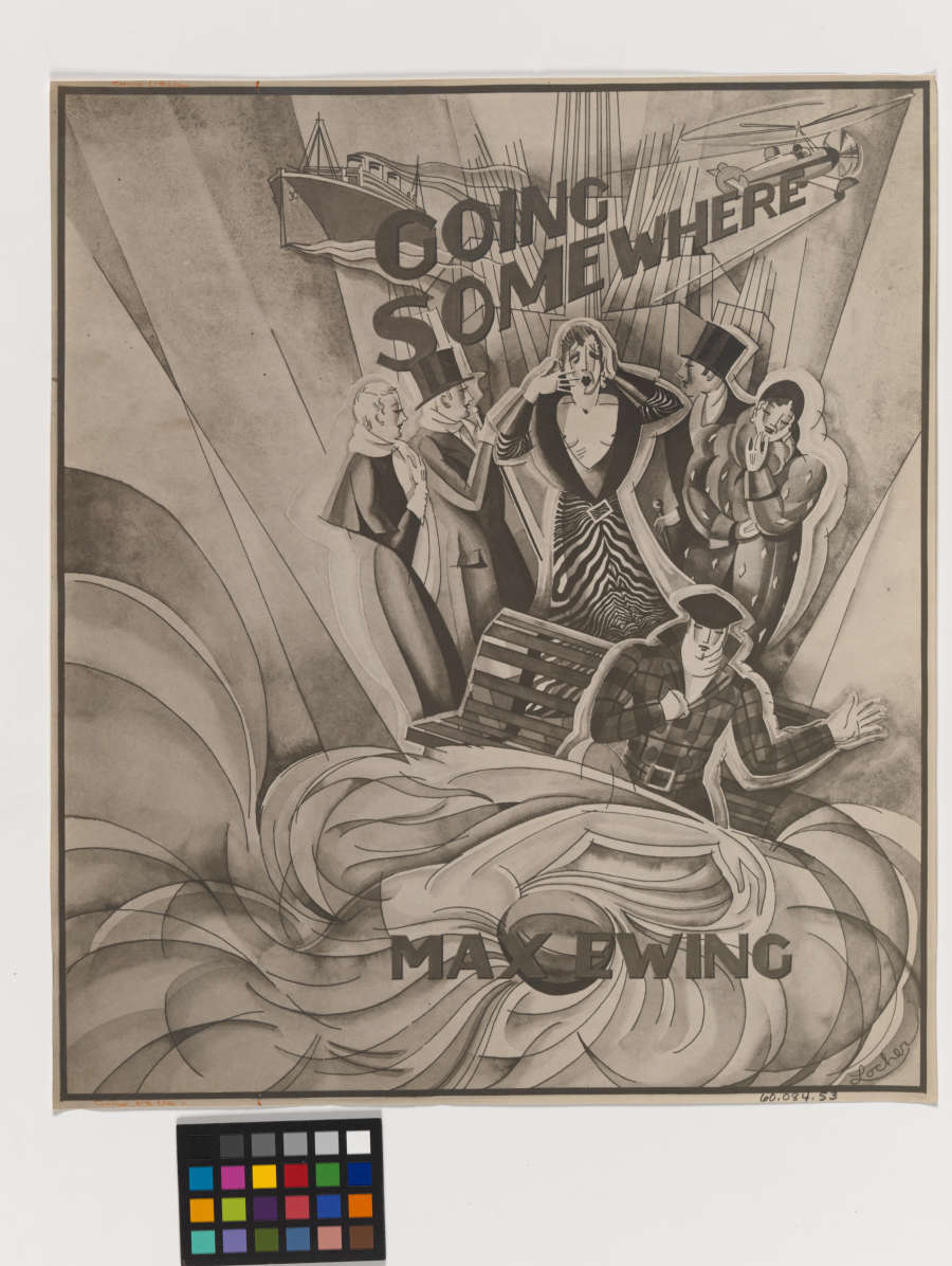 "Going Somewhere" painted on original image near upper edge of sheet. "Max Ewing" painted on original image near lower edge of sheet.